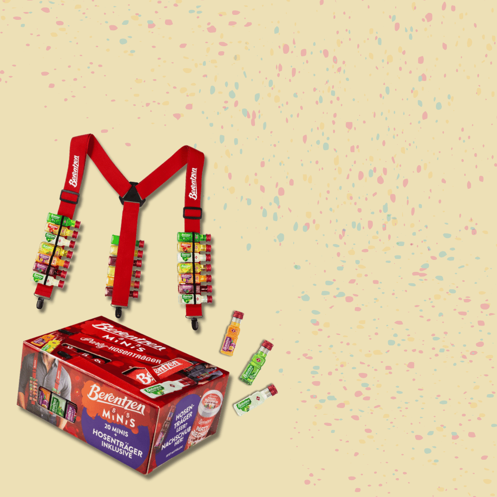 Berentzen Mini-Paket: Alles für die perfekte Feier!Freu dich auf ein unschlagbares Bundle, das alles vereint, was du und deine Freunde für einen unvergesslichen Abend brauchen!Das steckt im Paket:2x Berentzen Partybecher1x Berentzen Partygürtel inkl. 24 Minis1x Berentzen Sonnenbrille Deine Vorteile auf einen Blick: Große Auswahl fruchtiger Berentzen Minis (insgesamt 78 Fläschchen!)Praktisches Zubehör für unterwegsPerfekt für Karneval, Festivals, Junggesellenabschiede oder als Geschenk Spare im Vergleich zum Einzelkauf! Jetzt sichern und zum Partyhelden werden!Jetzt sichern und zum Partyhelden werden!